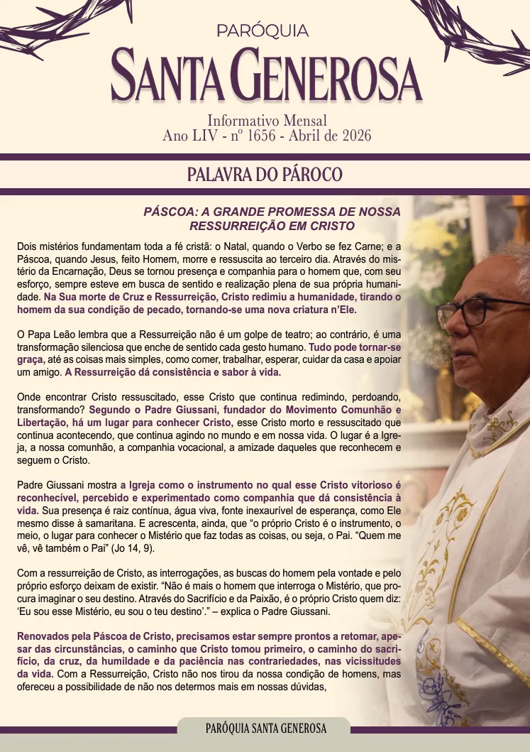 Julho é o mês da nossa Padroeira, Santa Generosa. No dia 17, celebra-se o martírio desta santa tão querida da Igreja. Embora seja de
